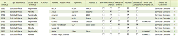 El campo “Borrador” viene marcado en aquellas solicitudes que provienen de un borrador de la campaña anterior.