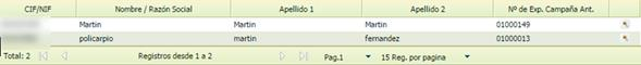 En ambos casos en la parte inferior aparece el Pie de Listaque permite aumentar la visualización de la relación de solicitantes resultantes en el caso de ser más numerosa.
