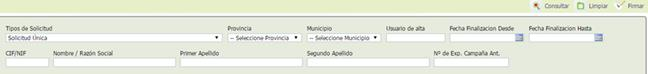 Son campos de filtro. Se eligen los campos de filtro y se dará al botón y mostrára en un nuevo formulario las solicitudes que cumplen las condiciones de filtro: