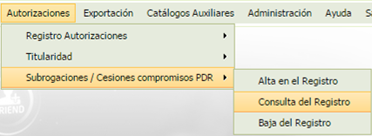 6.5.8 Subrogaciones / Cesiones compromisos PDR. Consulta del Registro.