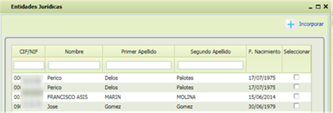 1. Pulsando el botón abre un formulario con la relación de socios productores asociados a la Organización de productores que se hubieran grabado desde la aplicación de Gestión.