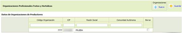 7.11.2 Funcionalidades. Alta de Organización de Productores