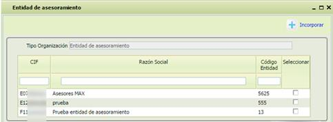 2. Aparece la siguiente pantalla en la que se puede seleccionar una o varias de las Entidades/Asociaciones disponibles: