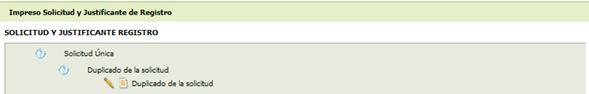 Si no se hubiera generado el impreso de la solicitud se tendrá la posibilidad de generar un duplicado: