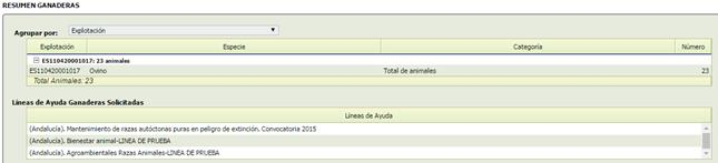Un Resumen de las explotaciones ganaderas que se pueden agrupar por Explotación, Especie o Categoría de animales .