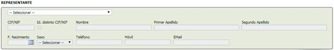 -[ Primer Apellido ] 1º apellido del representante. Obligatorio en el caso de introducir valor en [ CIF/NIF] y no marcar [Id. distinto CIF/NIF].