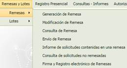 4.1.2.1 Remesas Esta opción recoge todas las operaciones relacionadas con la generación de remesas de solicitudes en estado Finalizada grabadas en la aplicación.