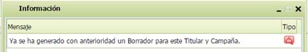 c- Si del titular existe borrador pero ya se ha generado aparecerá este mensaje: