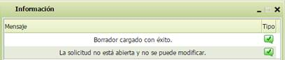 En este caso mostrará la solicitud en modo borrador y tendrá esta imagen:
