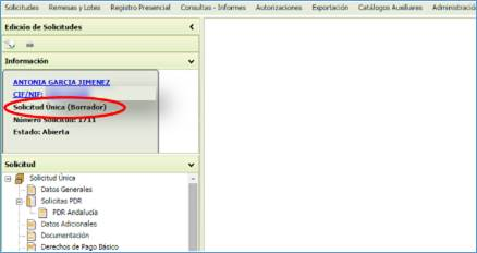 Una vez se ha dado guardar, se accede a la pantalla descrita en el punto 6.1.1.2 Edición de la solicitud, desde la que se comprobarán los datos de la misma.