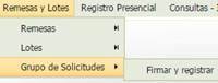 4.1.2.3 Grupos de Solicitudes Esta opción recoge las operaciones que dan la posibilidad de realizar la firma y el registro de varias solicitudes al mismo tiempo asignando un número individualizado de registro a cada solicitud.