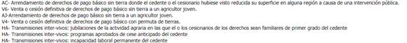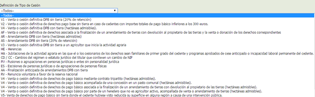 · [Definición de Tipo de Cesión]: Dispone de una lista de valores desplegable con todos los tipos de cesión disponibles para la campaña. Si se pulsa en la caja de texto se mostrarán los tipos de cesión: