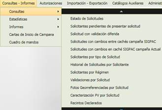 4.1.4.1 Consultas. Estado de Solicitudes Permite consultar los estados en los que se encuentran las solicitudes. Se accede seleccionando la primera subopción de la opción de Consultas.
