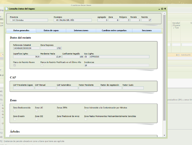 accederemos a la pantalla Consulta datos del SIGPAC del recinto visualizándose la siguiente pantalla: