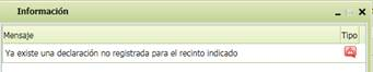 Se podrá crear una nueva Declaración de Aparcería Comunal para un recinto, siempre y cuando no exista ya una declaración para el mismo recinto (con independencia del solicitante) en estado Abierta, Finalizada o Remesada en la campaña seleccionada. En estos casos al dar al botón [Guardar] mostraría el siguiente mensaje: