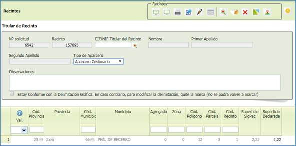 · Sólo habrá un recinto en cada declaración de aparcería comunal, que corresponderá a la referencia que se haya introducido en el alta de la declaración.