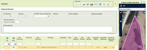 · Se tiene que incluir la información del Titular del Recinto y si es Aparcero Cedente o Cesionario.