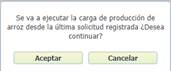 : Permite recuperar los datos de producción de la última solicitud registrada. Muestra el siguiente mensaje