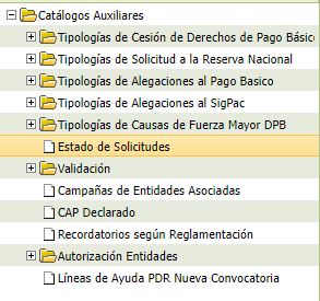 4.1.7.17 Estado de solicitudes Permite consultar los distintos estados en los que se puede encontrar una solicitud. Se accede seleccionando la sexta opción del menú: