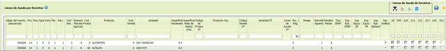 abre un impreso con una visión general de todos los recintos y las líneas de ayudas solicitadas por cada uno de ellos. La información será la matrícula SigPac de cada recinto, el producto y variedad declarados y las líneas que ha solicitado.