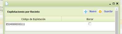 En este formulario se podrá asociar a cada uno de los recintos una o varias explotaciones ganaderas. Se cargan los datos de recinto que se encuentran en la pantalla “Datos de Recinto” a modo consulta y el campo “Cód. Explotación” será editable mediante el icono