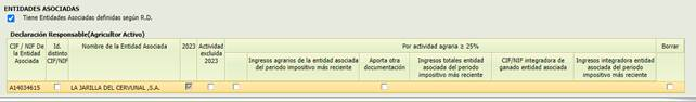 “Tiene Entidades Asociadas definidas según R.D”à si se marca esta casilla, aparece la tabla en la que se deberán relacionar las Entidades Asociadas del solicitante. Los datos de las entidades asociadas se