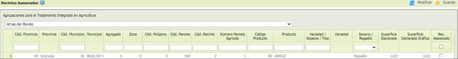 Y mostrará los recintos de la solicitud y habrá que marcar la casilla de verificación de aquellos recintos que asesora esa ATRIA y pulsar el botón