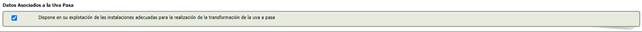 Esta unidad de información se muestra en la pantalla de “Datos Ayudas Agrícolas”, a través de un check se marcará si dispone en su explotación de las instalaciones adecuadas para la realización de la transformación, y a continuación guardamos los cambios realizados, pulsando el botón de guardar