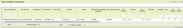 Permite realizar el mantenimiento (alta, consulta, modificación y baja) de los Datos de Edificios e Instalaciones de la explotación.