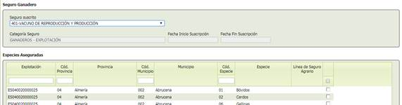 En este impreso según la línea asegurada se muestran las especies que se pueden acoger a ese seguro y se seleccionan las especies a asegurar: