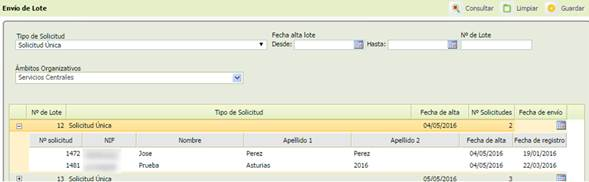 - [N.º Solicitudes]: número de solicitudes incluidas dentro de un lote