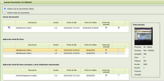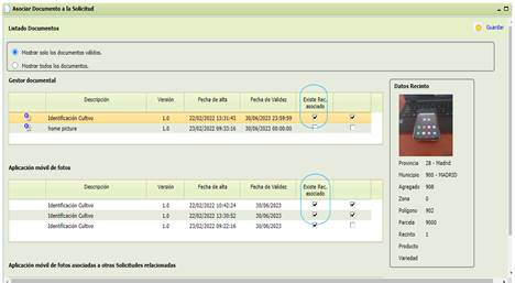 Las fotos asociadas a una primera solicitud se trasladan a la solicitud generada relacionada con la anterior, de forma que desde la pantalla “Documentos”, se puede visualizar aquellas fotos asociadas anteriormente.