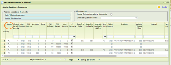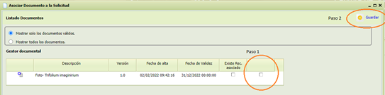 “Asociar documento a la solicitud”