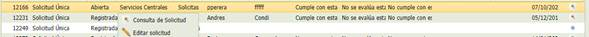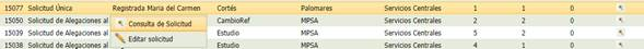 Si se selecciona uno de los registros y se tienen los permisos, haciendo doble clic sobre él, dará opción de entrar en esa solicitud en modo consulta o en modo edición: