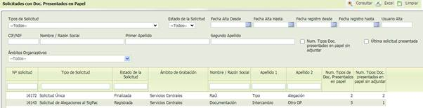 : Al pulsarlo, muestra las solicitudes que cumplen con los requisitos de filtrado: