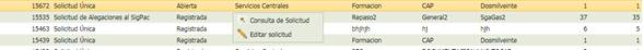 Si se selecciona uno de los registros y se tienen los permisos, haciendo doble clic sobre él, dará opción de entrar en esa solicitud en modo consulta o en modo edición: