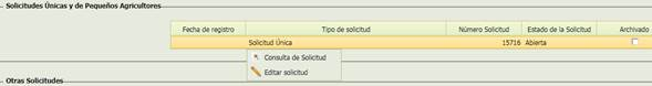 Si se selecciona uno de los registros y si se tienen los permisos, haciendo doble clic sobre el dará opción de entrar en esa solicitud en modo consulta o en modo edición: