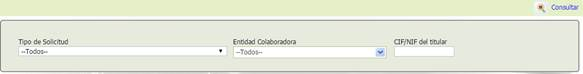 · [Entidad Colaboradora]: Entidad autorizada para representar al solicitante. Dispone de una lista de valores desplegable con todos las Entidades colaboradoras definidos en el sistema