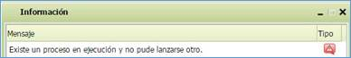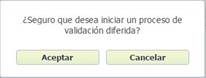 · En caso de que exista algún proceso de validación diferida anterior que aún esté en proceso, no se lanzará el nuevo proceso de validación diferida, advirtiéndolo con el siguiente mensaje: