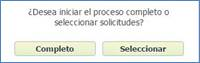 2- En caso de aceptarlo, se debe indicar en el mensaje siguiente si se desea realizar un proceso de validación diferida completo (se lanza el proceso en todas la solicitudes que tengan validaciones diferidas pendientes de procesar) o parcial, seleccionando las solicitudes en las que se desee lanzar el proceso: