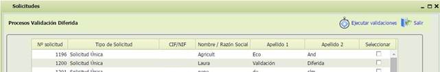 se lanza el proceso de validación diferida en las solicitudes que se hayan seleccionado mediante la casilla “Seleccionar”.