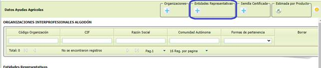 que abre un formulario con la relación de Entidades Representativas