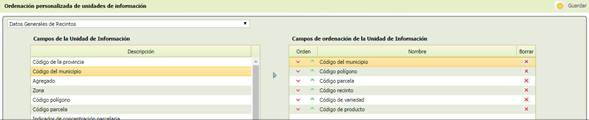 En el caso del ejemplo, según la preferencia escogida, ordenaría primero por municipio, después por polígono, parcela, recinto, variedad y por último por producto.