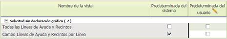 Se podrá elegir la forma de presentar la pantalla de Datos Específicos de recinto PDR. Con las Opciones de “Todas las líneas de Ayuda y Recintos” y “Combo Líneas de Ayuda y Recintos por línea” .