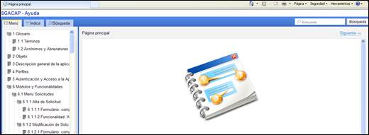 5 4.10.1 Ayuda contextual Se accede seleccionando la primera opción del menú. Abre en otra página la ayuda contextual.