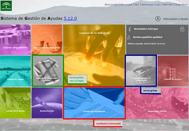 - tonos grises con un “aspa”, para las que se encuentren deshabilitadas o no instaladas.