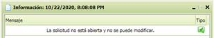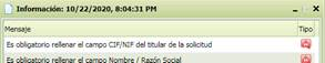 Se muestra al realizar una determinada función dentro de un formulario. En la parte superior del mensaje mostrará el dia y hora en la que se genera el mensaje.