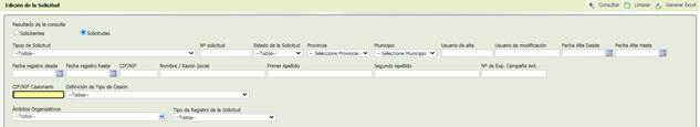Para poder realizar modificaciones de una solicitud de este tipo se accede seleccionando la segunda subopción de menú.