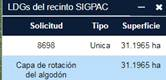 : una vez activada la herramienta y pulsando sobre un recinto SIGPAC mostrará un panel con todas las LDG asociadas a dicho recinto, indicando por cada una de ellas su declaración, tipo y superficie.