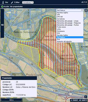 Ejemplo de propiedades de la capa Red Natura.